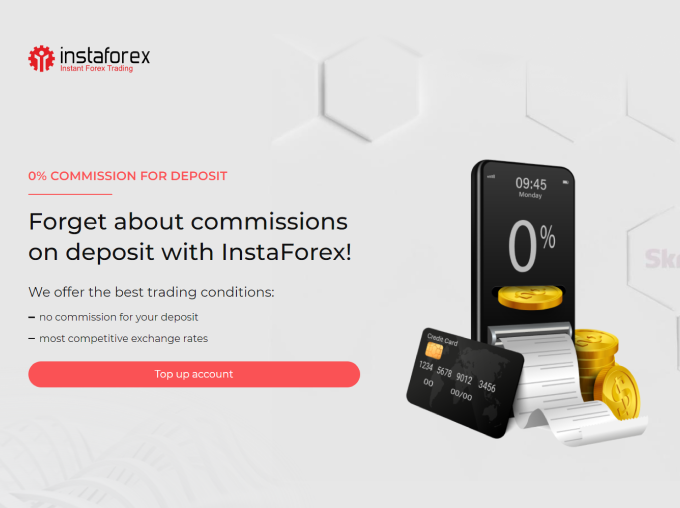 इंस्टा फॉरेक्स सबसे लाभकारी विनिमय दर प्रदान करता है और जमा के लिए कोई कमीशन नहीं लेता है। चाहे कोई भी ट्रेडिंग विधि हो गा, ग्राहक की जमा हुई राशि पूरी तरह से ट्रेड खाते में जमा की जाती है, किसी भी शुल्क के बिना।